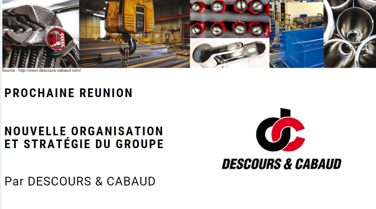 La nouvelle organisation et stratégie du groupe DESCOURS & CABAUD, en présence d'Alain MORVAND, Philippe MASSONNEAU et Marcel DUCELLIER